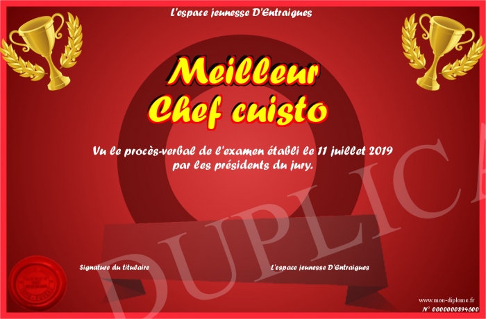 Envoyez par email votre Meilleur Chef cuisto personalisé