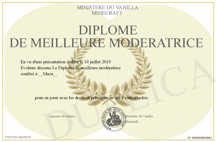 Envoyez par email votre Diplôme de meilleure modératrice personalisé