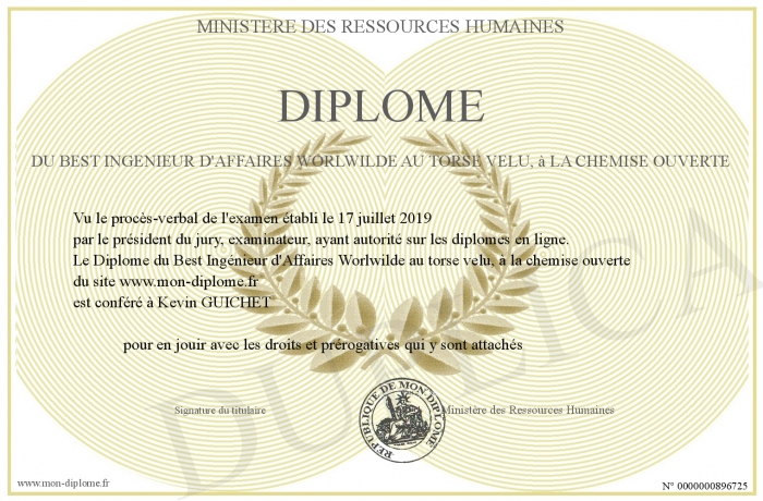 Envoyez par email votre Diplôme du Best Ingénieur d'Affaires Worlwilde au torse velu, à la chemise ouverte personalisé