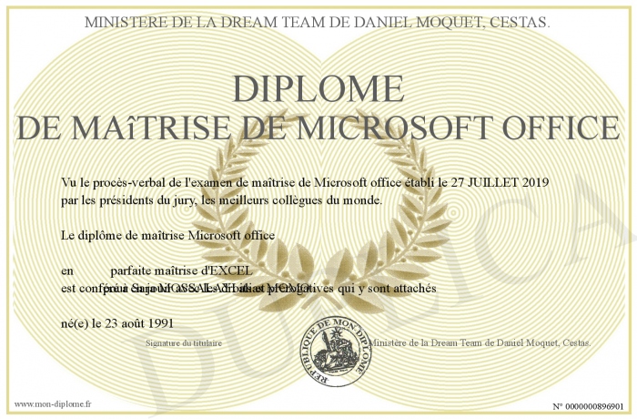 Envoyez par email votre Diplôme de maîtrise de Microsoft office personalisé