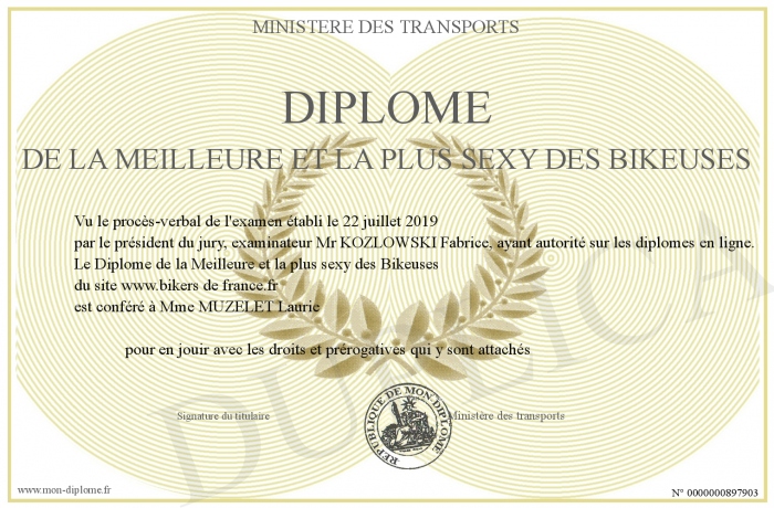 Envoyez par email votre Diplôme de la Meilleure et la plus sexy des Bikeuses personalisé