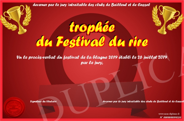 Envoyez par email votre trophée du Festival du rire personalisé