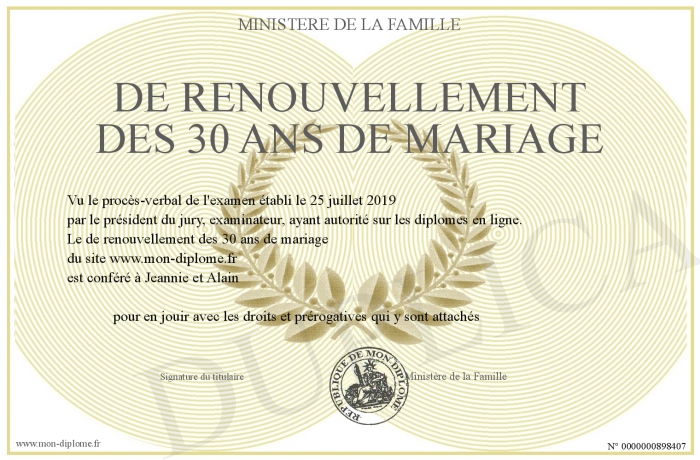 Envoyez par email votre de renouvellement des 30 ans de mariage personalisé