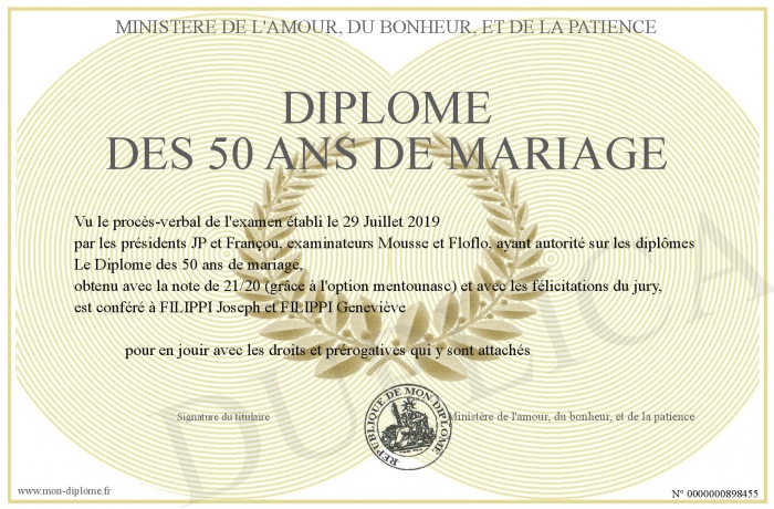 Envoyez par email votre Diplôme des 50 ans de mariage personalisé
