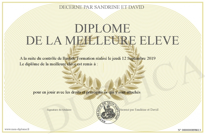 Envoyez par email votre Diplôme de la meilleure élève personalisé