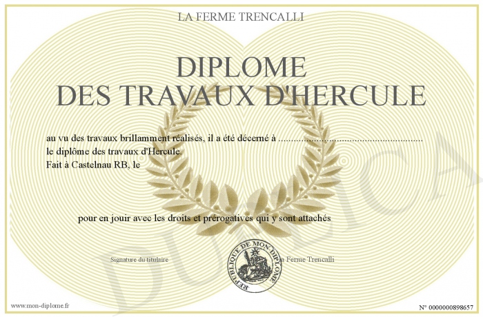 Envoyez par email votre Diplôme des travaux d'hercule personalisé