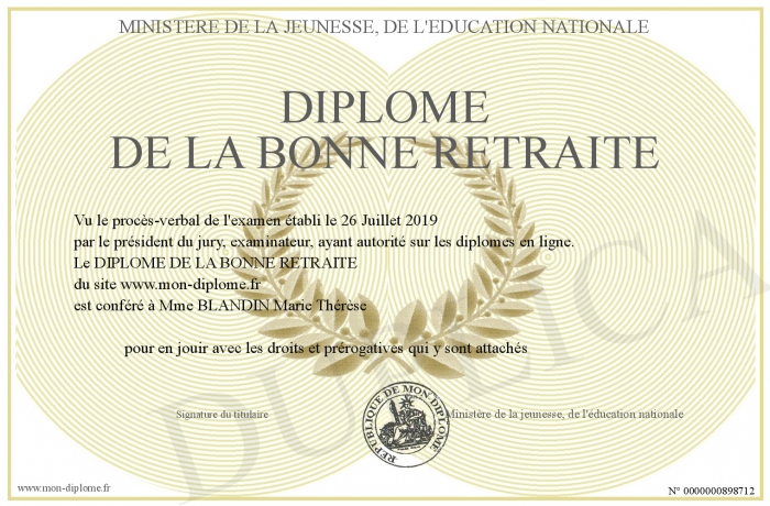 Envoyez par email votre Diplôme de la Bonne Retraite personalisé