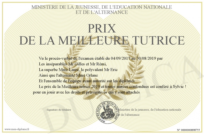Envoyez par email votre Prix de la meilleure tutrice personalisé