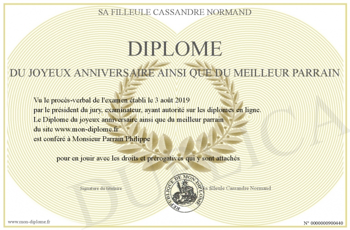 Envoyez par email votre Diplôme du joyeux anniversaire ainsi que du meilleur parrain personalisé