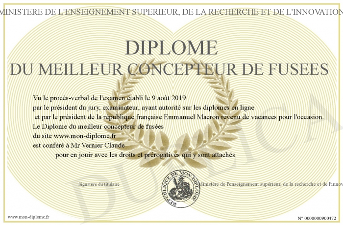 Envoyez par email votre Diplôme du meilleur concepteur de fusées personalisé