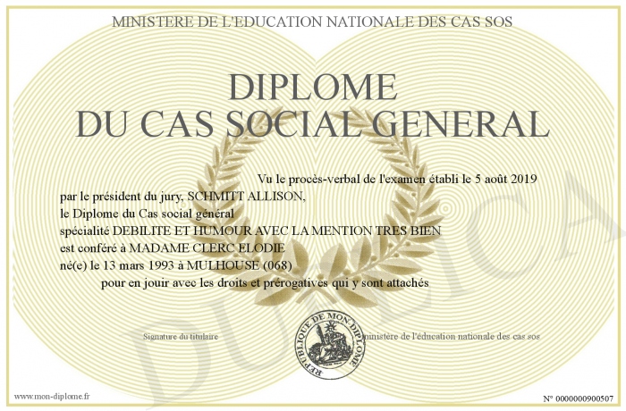 Envoyez par email votre Diplôme du Cas social général personalisé