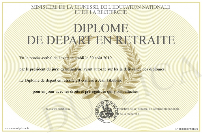 Envoyez par email votre Diplôme de départ en retraite personalisé