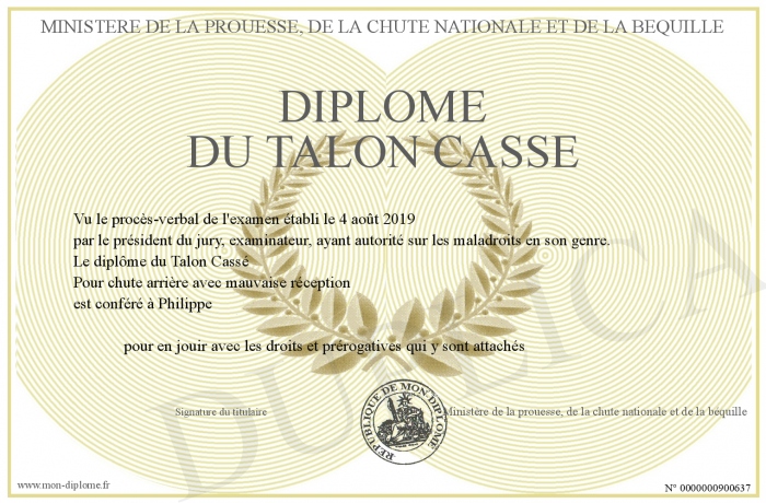 Envoyez par email votre Diplôme du talon cassé personalisé