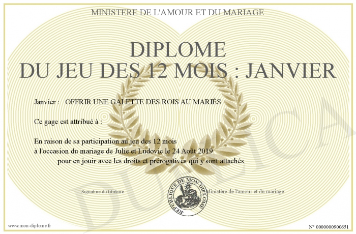 Envoyez par email votre Diplôme du jeu des 12 mois : Janvier personalisé
