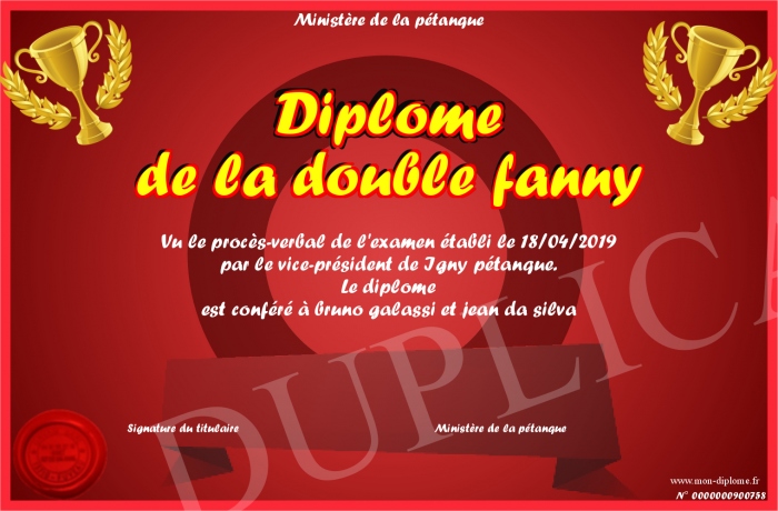 Envoyez par email votre Diplôme de la double fanny personalisé