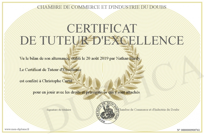 Envoyez par email votre Certificat de Tuteur d'Excellence personalisé