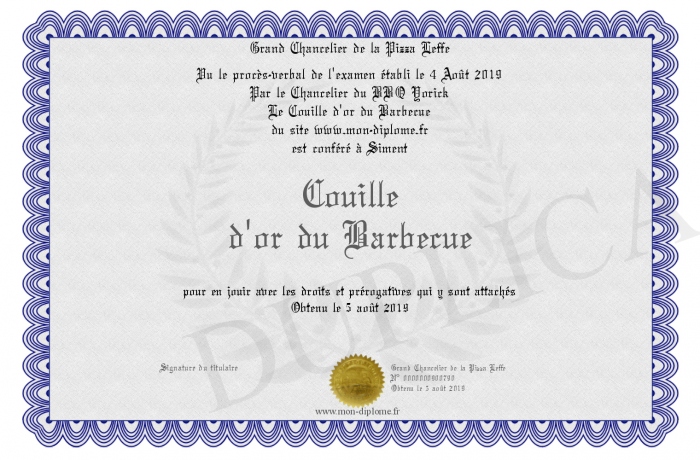 Envoyez par email votre Couille d'or du Barbecue personalisé