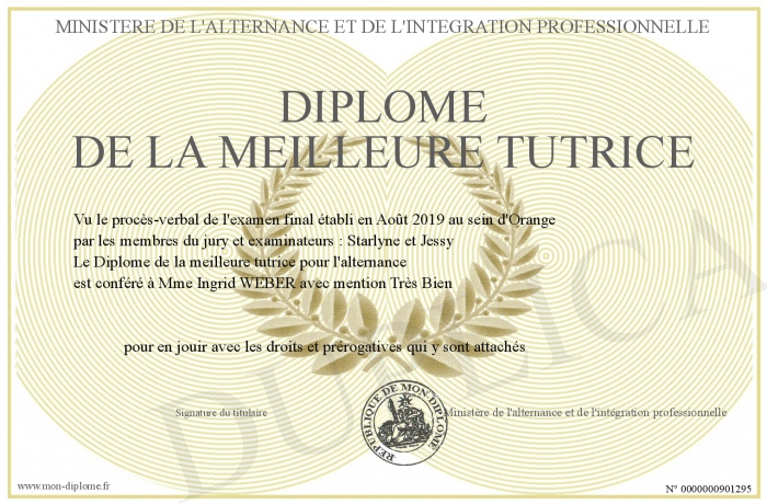 Envoyez par email votre Diplôme de la meilleure tutrice personalisé