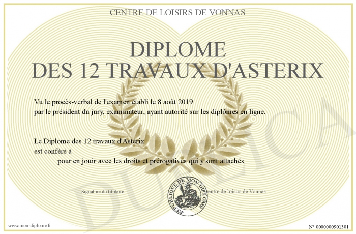 Envoyez par email votre Diplôme des 12 travaux d'Astérix personalisé