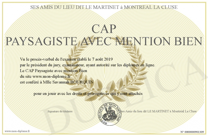 Envoyez par email votre CAP Paysagiste avec mention Bien personalisé