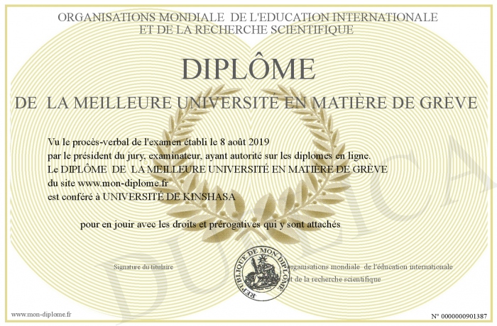 Envoyez par email votre DIPLÔME DE LA MEILLEURE UNIVERSITÉ EN MATIÈRE DE GRÈVE personalisé