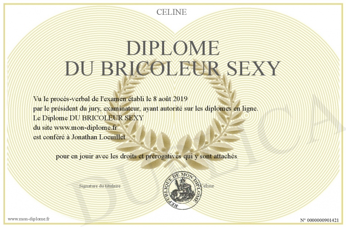 Envoyez par email votre Diplôme DU BRICOLEUR SEXY personalisé