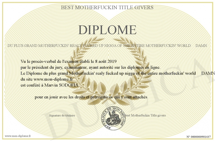 Envoyez par email votre Diplôme du plus grand Motherfuckin' realy fucked up nigga of the entire motherfuckin' world DAMN personalisé