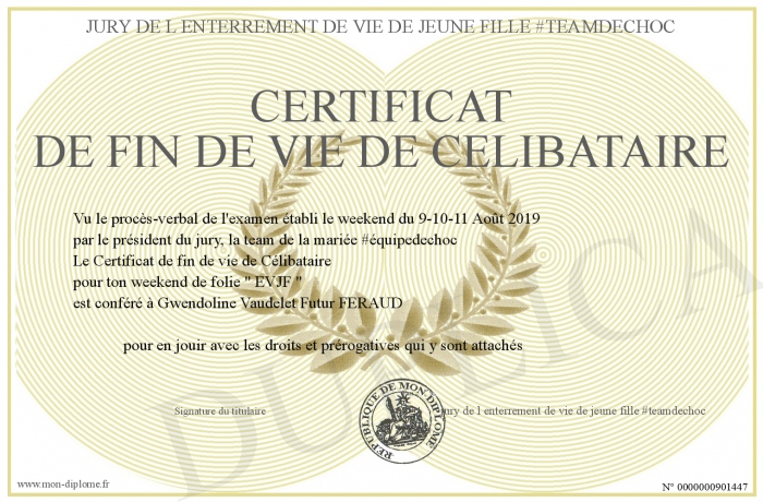 Envoyez par email votre Certificat de fin de vie de célibataire personalisé