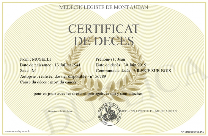 Envoyez par email votre CERTIFICAT DE DECES personalisé