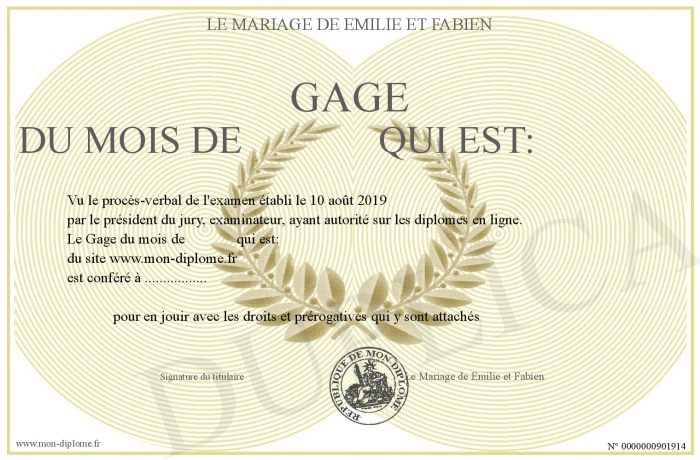 Envoyez par email votre Gage du mois de qui est: personalisé