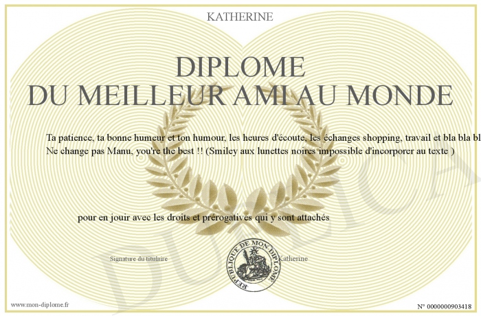 Envoyez par email votre Diplôme du meilleur ami au monde personalisé