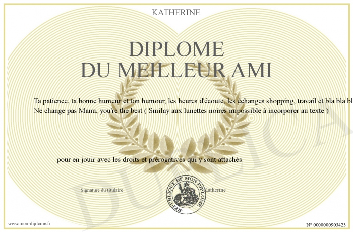 Envoyez par email votre Diplôme du meilleur ami personalisé