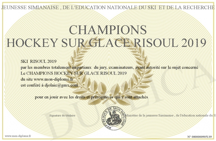 Envoyez par email votre CHAMPIONS HOCKEY SUR GLACE RISOUL 2019 personalisé