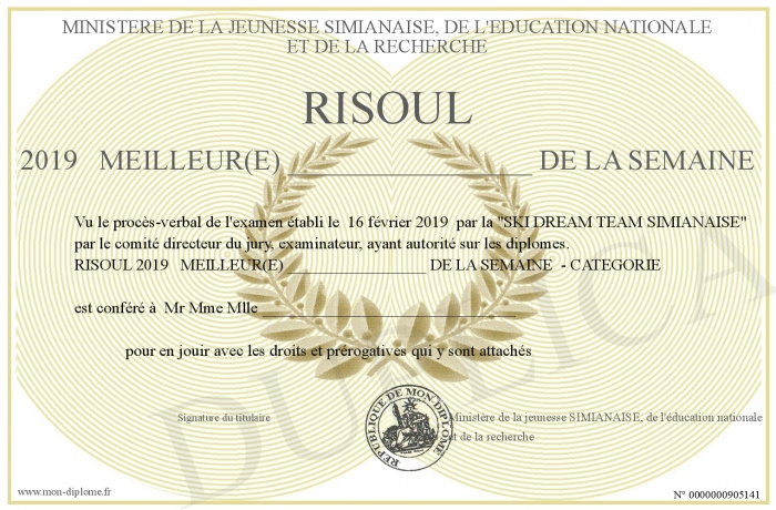 Envoyez par email votre RISOUL 2019 MEILLEUR(E) _________________ DE LA SEMAINE personalisé