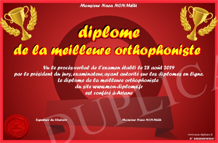 Envoyez par email votre diplôme de la meilleure orthophoniste personalisé