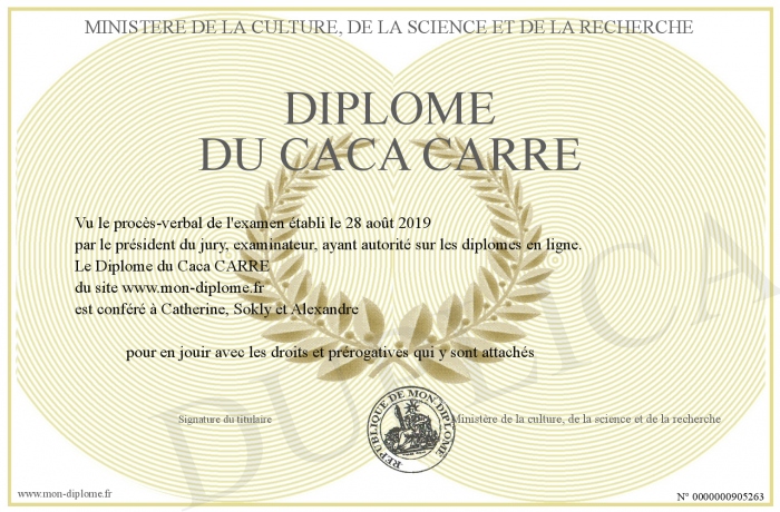 Envoyez par email votre Diplôme du Caca CARRE personalisé