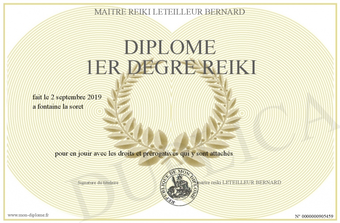Envoyez par email votre diplome 1er degre reiki personalisé