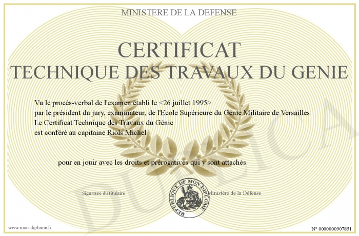 Envoyez par email votre Certificat Technique des Travaux du Génie personalisé