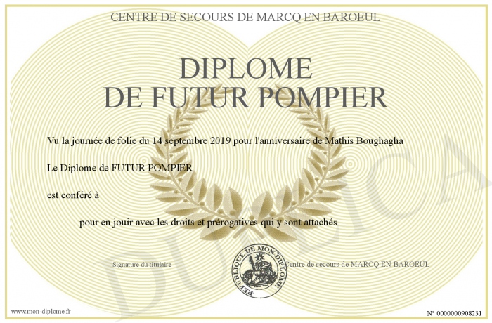 Envoyez par email votre Diplôme de FUTUR POMPIER personalisé