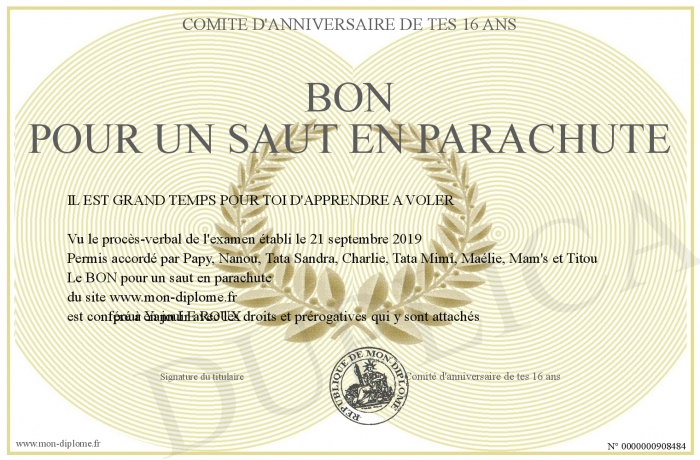 Envoyez par email votre BON pour un saut en parachute personalisé
