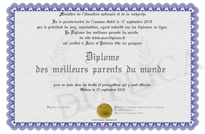 Envoyez par email votre Diplôme des meilleurs parents du monde personalisé