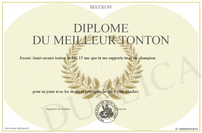 Envoyez par email votre Diplôme du meilleur tonton personalisé