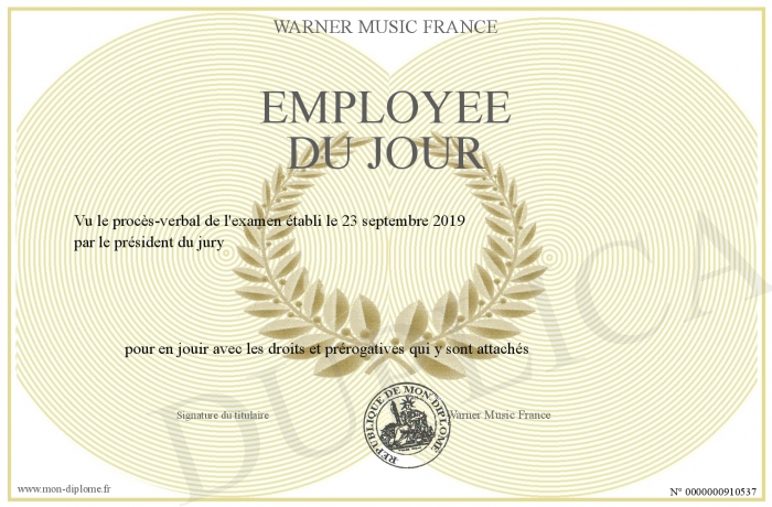 Envoyez par email votre Employée du jour personalisé