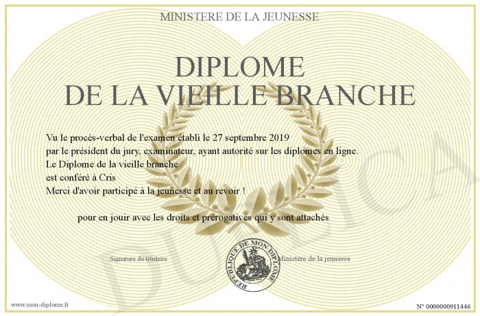 Envoyez par email votre Diplôme de la vieille branche personalisé