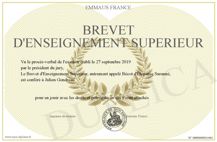 Envoyez par email votre Brevet d'Enseignement Supérieur personalisé