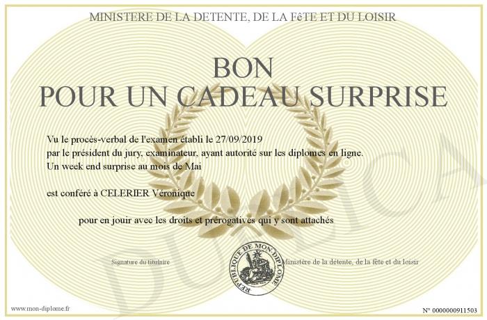 Envoyez par email votre Bon pour un cadeau surprise personalisé