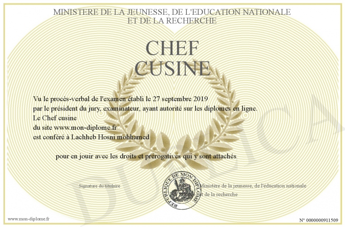 Envoyez par email votre Chef cusine personalisé