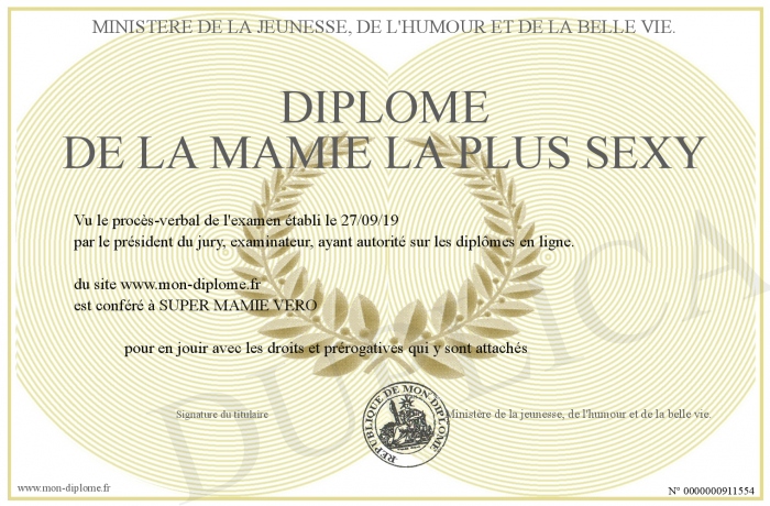 Envoyez par email votre Diplôme de la mamie la plus sexy personalisé