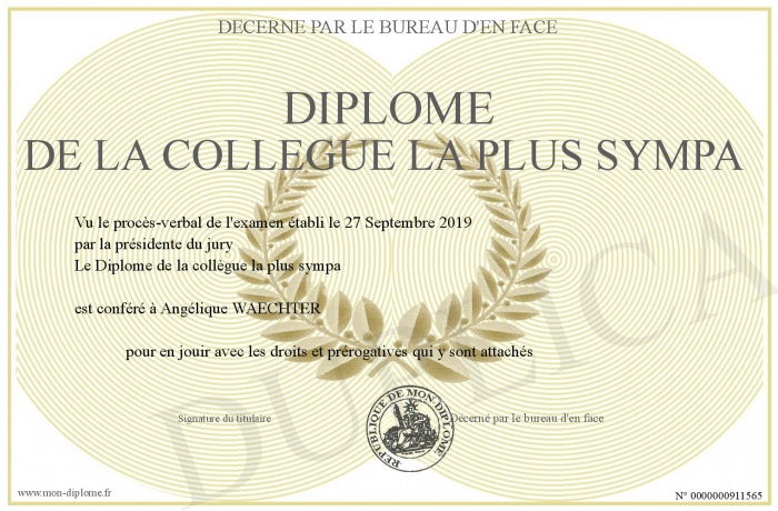 Envoyez par email votre Diplôme de la collègue la plus sympa personalisé