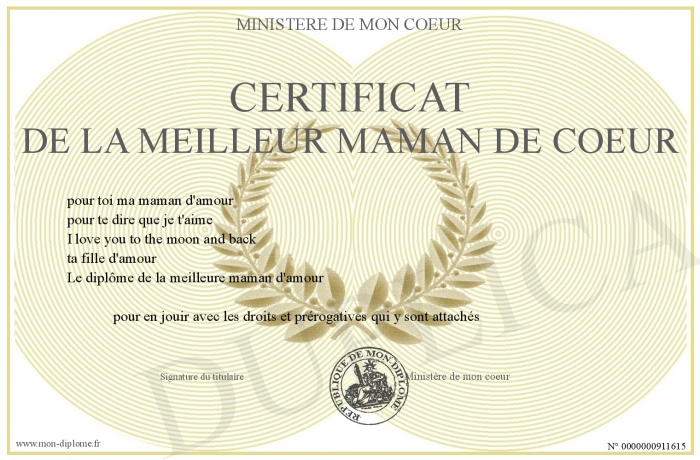 Envoyez par email votre certificat de la meilleur maman de coeur personalisé
